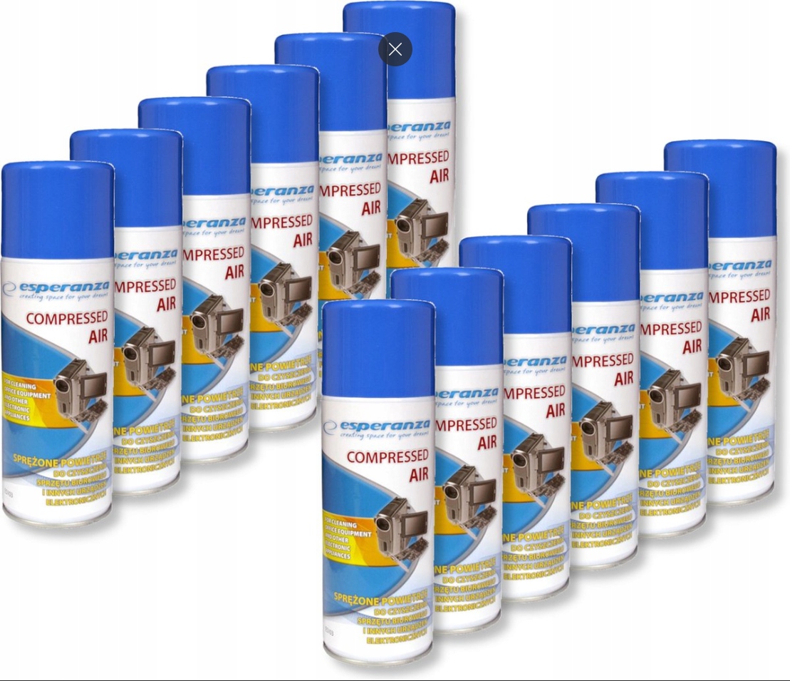 STLAČENÝ VZDUCH 400 ml ES103 s trubičkou x 12 kusů v kartonu – originál!.Aerosol obsahující stlačený vzduch, používaný k čištění takových míst, jako jsou otvory a štěrbiny.Ideální pro čištění klávesnic, tiskáren, Hi-FI zařízení, videa, televizorů, optických konektorů apod.400 ml stlačeného vzduchu! pro čištění kancelářského vybavení a dalších elektronických zařízeníVyfukuje prach a další nečistoty z těžko přístupných míst. Doporučeno pro čištění: pokladen, počítačů (čištění klávesnice, vnitřku počítačové skříně), kancelářského vybavení, kopírek, tiskáren, fotografického vybavení, zařízení přesné mechaniky, telekomunikačních zařízení.Způsob užitíPřed použitím odpojte zařízení od napětí a nádobu protřepejte. Použití nádoby v opačné poloze způsobuje, že místo stlačeného vzduchu získáme proud plynu se silně chladicími vlastnostmi, který umožňuje ochlazení všech povrchů a prvků na teplotu. dobře. -50 °C. Tento výrobek se od ostatních tohoto typu dostupných na trhu odlišuje skutečností naplnění podle posledních norem Evropské unie ekologickým plynem. Díky speciální směsi plynů je nádoba pod tlakem účinnější. Nevystavujte slunečnímu záření a jiným zdrojům tepla, které mohou nádobu zahřát na teplotu nad 50 °C.Kód produktu: ES103
