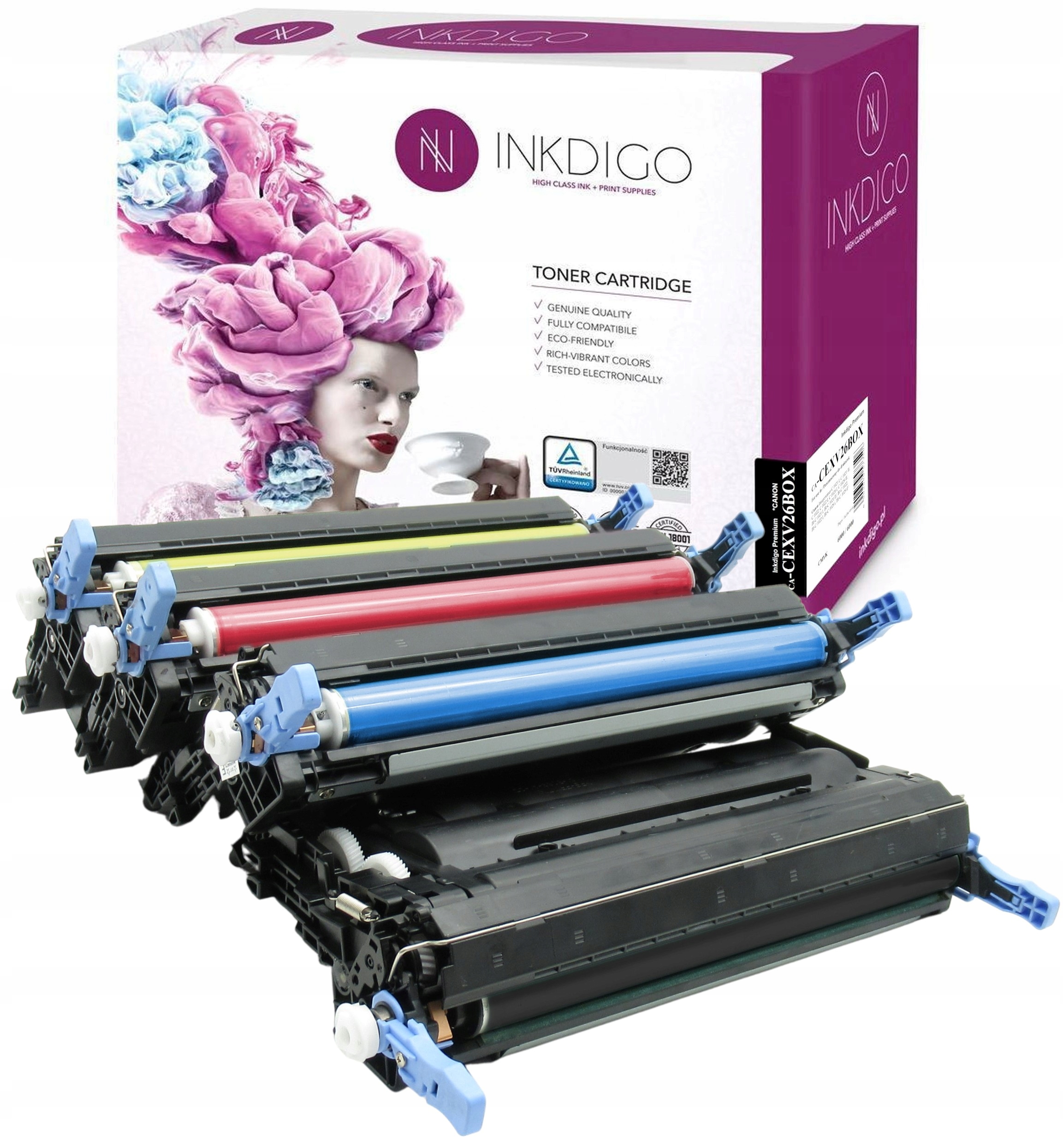 Náhradní tonery značky INKDIGO pro tiskárnu CANON / model CA-CEXV26BOXKontrolovaná výkonnost černá – produkty Inkdigo představují nejvyšší kvalita za konkurenceschopnou cenuGarantovaná výtěžnost (černá): 6000 stran (při 5% pokrytí)Garantovaná výtěžnost (barvy): 6000 stran (při 5% pokrytí)Značka: INKDIGOTiskárna: CanonSymbol: CA-CEXV26BOXBarva: černá (black), červená (magenta), modrá (cyan), žlutá (yellow), sadaObsah sady:1x Toner INKDIGO pro CANON CEXV 26 Black – 6000 stran1x Toner INKDIGO pro CANON CEXV 26 Cyan – 6000 stran1x Toner INKDIGO pro CANON CEXV 26 Yellow – 6000 stran1x Toner INKDIGO pro CANON CEXV 26 Magenta – 6000 stranTonery se prodávají s nainstalovaným nejnovějším čipem – kupujete a tisknete!Vhodné pro tiskárny:Canon Imagerunner C 1021 ICanon Imagerunner C 1021 IFCanon Imagerunner C 1022Canon Imagerunner C 1022 ICanon Imagerunner C 1028 ICanon Imagerunner C 1028 IFInkdigo je opravdová prémiová značka potvrzená příslušnými dokumenty, nikoli slovy. Celý výrobní proces je průběžně kontrolován nezávislými akreditovanými subjekty a musí splňovat přísné požadavky. Nestydíme se za naše certifikáty a zveřejňujeme je na našich webových stránkách. Jsme obzvláště hrdí na certifikát TUV, kterým se může pochlubit pouze několik výrobců v Evropě.Každý produkt INKDIGO je následující:servisní program door-2-doorzvýšená účinnost oproti originálnímu výrobkuvysoká sytost černéjasný výtisk grafiky a textuCertifikát TUV a ISO100% připraveno k okamžitému použití.