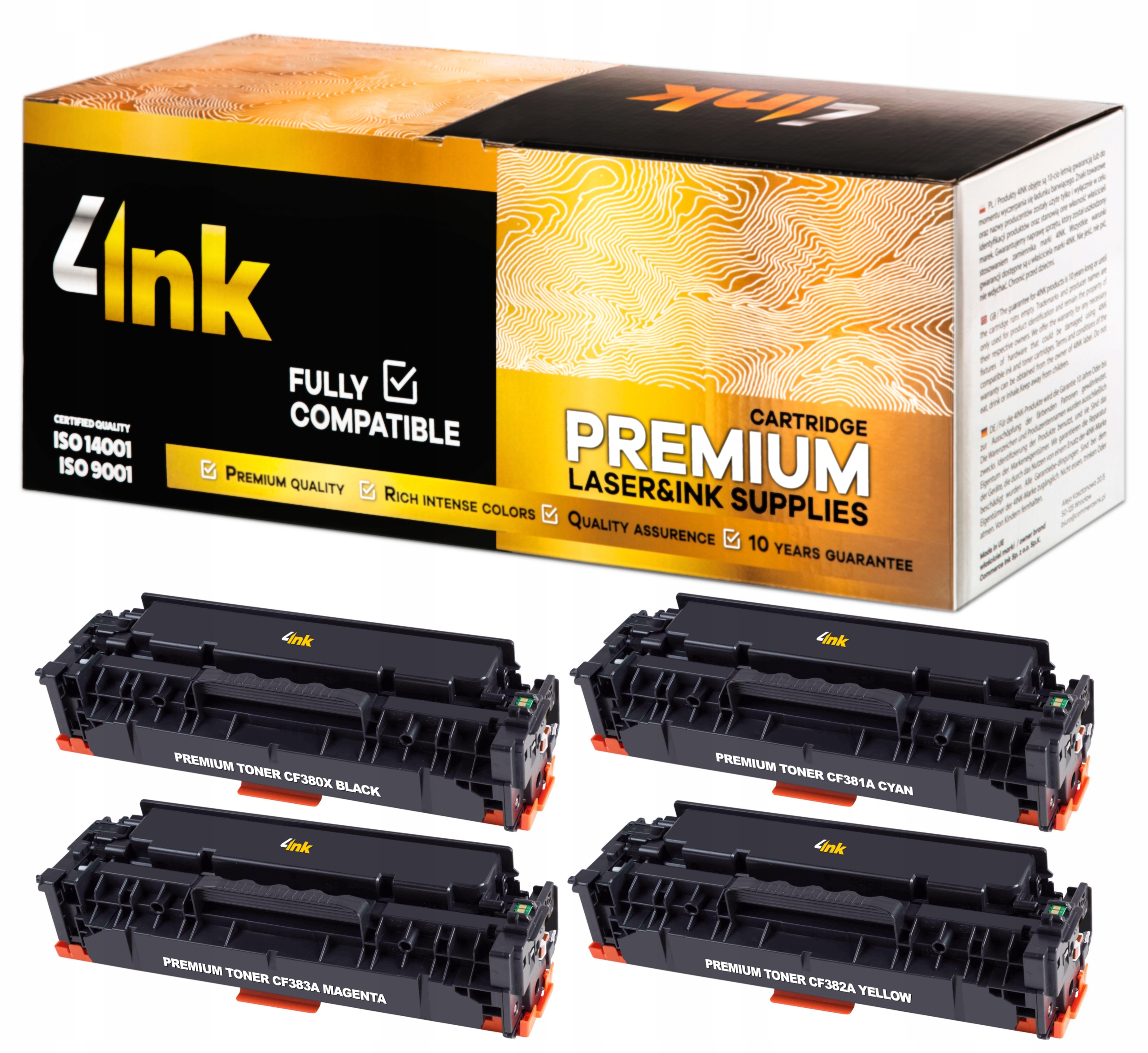 4x Zcela Nový toner značky 4INK pro tiskárnu HP 312X – model 312A / 312XCertifikáty ISO 9001 – ISO 14001 / Produkty 4INK jsou nejvyšší kvalita Premium / Kapacita XL až 4000 stran černá / Barvy až 2800 stran4x Toner / HP / 312X / CF380X / CF381A / CF382A / CF383AZnačka: 4INKBarva: CMYK / Černá / Azurová / Magenta / ŽlutáVýkonnost: Černá 4000 stranVýkonnost: Modrý 2800 stranVýkonnost: Červená 2800 stranVýkonnost: Žlutá2800 stranNáhradní díl: HPModel: CF380X / CF381A / CF382A / CF383ATyp: Premium XLStav: NovýTonery 4INK jsou následující:
