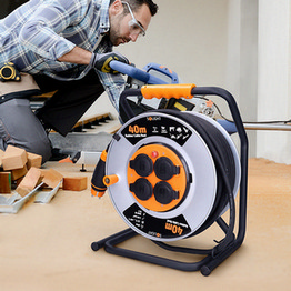Spolehlivý pomocník pro náročné profese 40m prodlužovací kabel s robustní konstrukcí navijáku a cívkou z kovového plechu je nezničitelný fachman. Vodicí oko zajišťuje plynulé navinutí kabelu a šetří tak čas i nervy. Prodloužená zástrčka s…