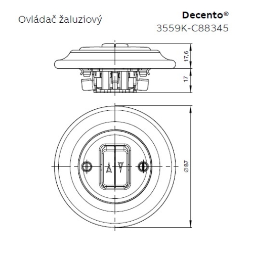 Designový žaluziový ovladač Decento je nádhernou a funkční kombinací retro stylu a moderního zpracování. Jedná se o bílý, porcelánový spínač k ovládání žaluzií (prodává se kompletní, tedy přístroj i s krytem), který je součástí unikátní řady zásuvek a vypínačů ABB Decento. Tyto retro domovní přístroje zaujmou jak v historických prostorách, tak v interiérech ve stylu Provence. Retro žaluziový spínač ABB Decento v bílém, lesklém provedení s řazením 1/0+1/0 s blokováním má dimenzovaný proud 10 A a napětí 250 V. Vhodnou instalační krabici najdete v sekci K montáži. Pro instalaci více přístrojů vedle sebe musí být rozteč středů instalačních krabic alespoň 90 mm. Ovladač má bezšroubové svorky pro vodiče 1-2,5 mm². Podívejte se na všechny retro zásuvky a retro vypínače ABB Decento, které nabízíme v bílé a černé barvě. Vybírejte ze všech vypínačů ABB a podívejte se na kompletní sortiment zásuvek a vypínačů. Pokud jste milovníci retro stylu, oceníte i naše retro LED žárovky ve filament provedení. O společnosti ABB ABB je švédsko-švýcarská nadnárodní korporace působící ve více než 100 zemích světa. Tato přední světová společnost s více než 120letou tradicí působí především v oblasti energetiky a automatizace. V Česku formálně působí od roku 1992 a zaměřuje se především na kvalitní zásuvky a vypínače. V našem řadu najdete celou řadu produktových řad designových i praktických domovních přístrojů. Kromě výše zmíněné nejúspěšnější série zásuvek a vypínačů ABB Tango doplňují kolekci funkčních vypínačů a zásuvek řady ABB Classic a ABB Swing. Zajisté také oceníte nádherné vypínače a zásuvky ABB Solo Carat a ABB Impuls či originální design a klasický materiál porcelánových zásuvek a vypínačů ABB Decento. Kromě tohoto sortimentu najdete v naší nabídce také modulové rozvodnice ABB či elektroinstalační krabice. Prohlédněte si kompletní výběr výrobků ABB na našem e-shopu K&V ELEKTRO.