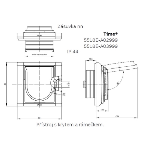 200 KčABB Element,Time zásuvka IP44 bílá/bílá 5518E-A02999 03 s clonkami