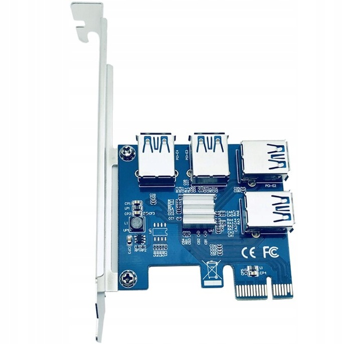 Adaptér Rozdělovač portu. ROZBOČ. OVAČ RIZIKAPCI-E 1x na 4x USB 3. 0. Popis:Adaptér, díky kterému mohou z jednoho slotu PCI-E používat 4 grafické karty připojené přes riser.