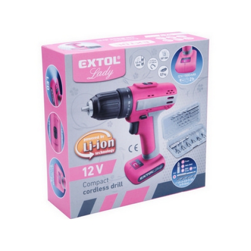 Aku šroubovák růžový EXTOL LADY 402402 12V 1,5Ah