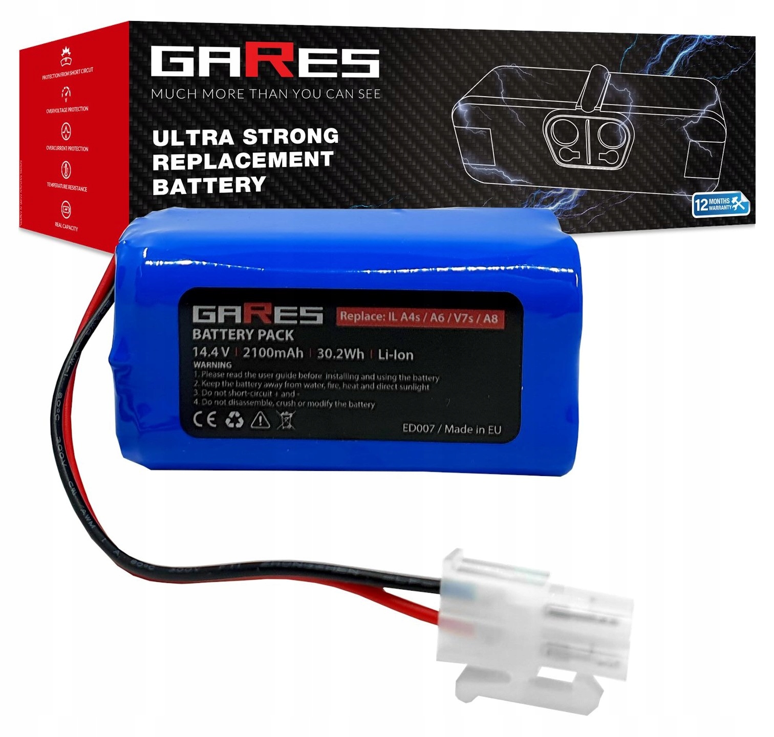Značkový akumulátor 14,4 V 2,1 Ah (2100 mAh) pro vysavač ILIFE / Silvercrest / Dibea / Ecovacs – vyberte si výkonné a spolehlivé baterie Gares®!