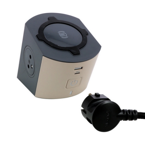 Zásuvkový blok 2x2. P+T/USB A+C s bezdrátovou indukční nabíjecí plochou, bílá/hnědošedá