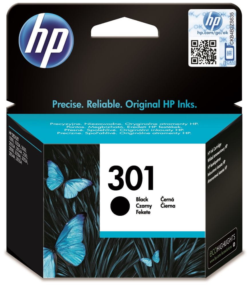 Černá inkoustová kazeta HP č. 301, originální inkoustová kazeta HP CH561EE HP 301 pro tiskárnu HP 1000, HP 1050, HP 2000, HP 2050, HP 3000. HP 3050.Specifikace: Typ náplně: Inkoust Barva: Černá Kapacita: 3 ml Výtěžnost (5% pokrytí): 190 stran A4 Počet v jednotkovém balení: 1 Kompatibilita: HP Deskjet 1000, HP Deskjet 1050 – J410, HP Deskjet 1050se, HP Deskjet 2000, HP Deskjet 2050 – J510, HP Deskjet 2050se, HP Deskjet 3000 (CH393B), HP Deskjet 35se, HP03skjet 36105, HP03skjet HP 1000, HP 1050, HP 1050se, HP 2000, HP 2050, HP 2050se, HP 3000, HP 3050, HP 3050se, HP 3050ve