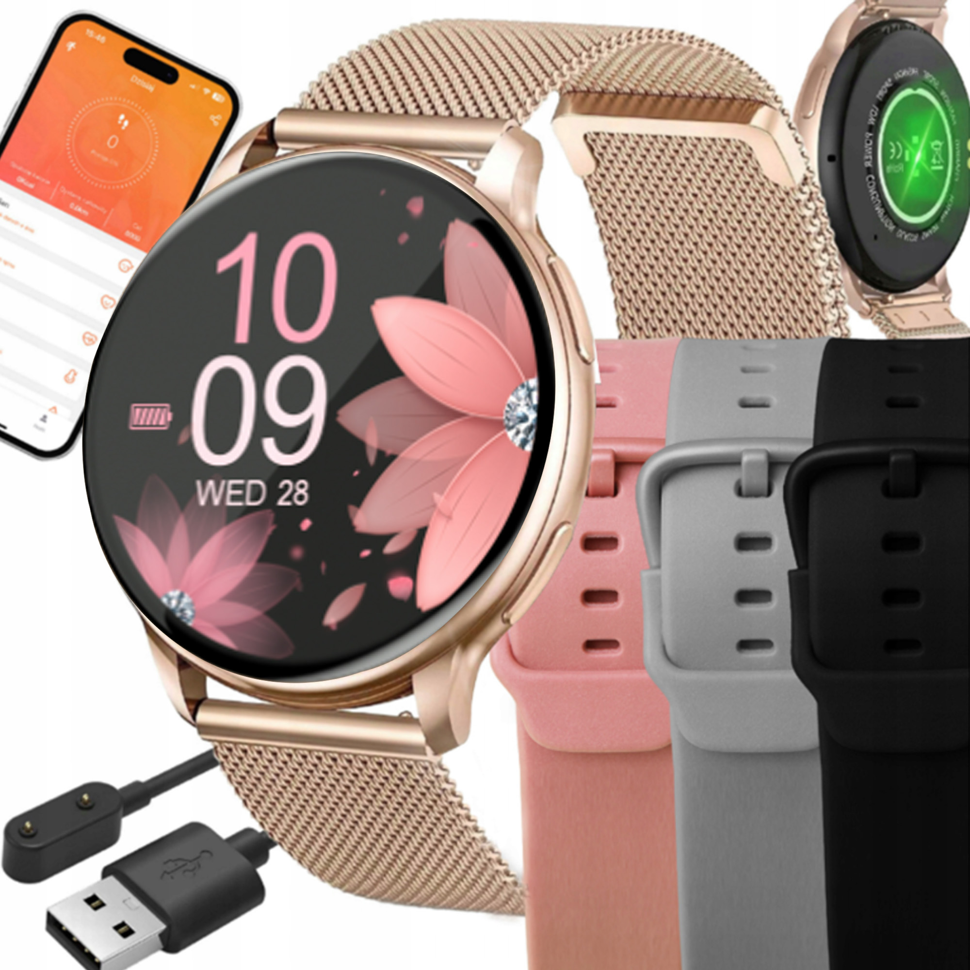 CHYTRÉ HODINKY DÁMSKÉ POLSKÉ MENU HOVORY OZNÁMENÍ SPORT 4 ŘEMÍNKYElegantní hodinky, které umožňují přijímat hovory a nabízejí mnoho zdravotních funkcí?JE TO MOŽNÉ!Naše chytré hodinky jsou super vychytávkou, která vám umožní lépe organizovat svůj život a efektivněji pečovat o zdraví a pohodu.Specifikace:Displej: 1,39”, 360x360Procesor: RTL8763EWEDoba nepřetržitého provozu: 5-7 dníDoba pohotovostního režimu: až 15 dnůKompatibilita: Android od 5.0 a iOS od 10.0Voděodolnost: IP67Certifikáty: ROHS 2011/65/EU, FCC, rádiová směrnice RED 2014/53/EUMenu hodinek: polštinaMenu aplikace: polštinaAplikace ke stažení do telefonu:PUBU WEARObsah sady:hodinky,4 x vyměnitelný řemínek (ocelový zlatý nebo stříbrný, stříbrný, černý, béžový), – V poznámkách k nákupu prosíme o uveďte barvu ocelového řemínku: zlatý, stříbrnýsklo nanesené na displej,magnetická nabíječka (bez napájecího adaptéru!) ),balení,návod k obsluze je v polštině.Co dělá naše chytré hodinky tak super?✅ Je kompatibilní s chytrými telefony Anrodid a iOS.✅ Jeho obrazovka se probudí po otočení zápěstí.✅ Nabízí možnost přijímání telefonních hovorů.✅ Má mnoho zdravotních funkcí.✅ Má zabudované mnoho tréninkových režimů.✅ Zobrazuje notifikace z aplikace.✅ Jeho baterie je velmi prostorná, takže vydrží na jedno nabití až týden.Podporované zdravotní funkce:➡ Měření okysličení krve (saturace)➡ Měření krevního tlaku➡ Měření tepu➡ Monitorování spánku➡ Připomenutí hydratace➡ Připomenutí nečinnosti➡ Trénink tréninkPozor! Chytré Hodinky nejsou zdravotnickým zařízením a jejich měření nemusí být vždy přesné.Seznamte se s nejdůležitějšími funkcemi nabízeného zařízení!➡ Podpora hovorůNaše chytré hodinky se připojují k telefonu přes Bluetooth. Navíc umožňuje pohodlné vyřizování hovorů!➔ 20 nejčastěji volených kontaktů se zobrazí v telefonním seznamu zařízení!➡ Upozornění na hovory a z aplikacíBojíte se, že něco propásnete? Nemusíš! Hodinky zobrazí všechna upozornění z vašeho telefonu: informace o hovoru, nový e-mail a SMS, stejně jako upozornění ze sociálních médií.➡ Fyzická aktivitaHodinky umožňují sledování fyzické aktivity. Díky němu změříte svůj pokrok v následujících oblastech:Počet ušlých krokůVzdálenostČas tréninkuTepová frekvence během tréninkuSpálené kalorie➡ TréninkNabízené chytré hodinky nabízejí mnoho sportovních režimů, včetně mj.:ProcházkaBěhKoloLezeníJógaFotbalový míčBadmintonTenisBasketbalStolní tenisŠvihadlo➡ Personalizace hodinekHodinky nabízejí 6 motivů ciferníků na výběr. Dalších 100 najdete v aplikaci PUBU WEAR. Díky tomu si můžete ciferník přizpůsobit podle svého vkusu a aktuálních potřeb. Navíc je zde také možnost nastavit si vlastní grafiku nebo fotografii jako tapetu!➡ Menu v polštiněNabízené chytré hodinky pocházejí z polské distribuce. To znamená, že jeho menu je k dispozici v polštině. Totéž platí pro aplikaci PUBU WEAR!➡ Monitorování menstruačního cykluPo zadání údajů do aplikace můžete sledovat svůj menstruační cyklus pomocí hodinek. Naše chytré hodinky vám sdělí, v jaké fázi cyklu se právě nacházíte a kdy byste měla očekávat období.➡ Funkce vyhledávání telefonuStává se vám, že telefon odložíte na takové místo, že ho nemůžete najít? Konec s tímto problémem! Naše chytré hodinky mají funkci vyhledávání telefonu, což znamená, že vám pomohou najít vaše zařízení.➡ Monitor spánkuDíky funkci monitorování spánku se seznámíte s klíčovými parametry svého spánku. To vám zase pomůže lépe pochopit svůj organismus.Další funkce:✅ Regulace jasu displeje✅ Ovládání hudby✅ Tréninkové cíle✅ Historie výsledků✅ Předpověď počasí✅ Telefonní seznam (20 nejčastěji volených kontaktů)✅ Kalendář✅ Kalkulačka✅ Ovládání fotoaparátu✅ Stopky✅ Minutník✅ Alarm/budík