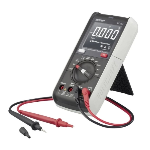Pod robustním krytem s ochranou z měkké gumy skrývá digitální multimetr VOLTCRAFT VC252 řadu funkcí: Umožňuje měření AC/DC napětí, AC/DC proudu do 10 A, měření kapacity a odporu. Nejlepší rozsah zobrazení je nastaven přístrojem automaticky. Funkce LoZ pomáhá předcházet chybným výsledkům měření díky fantomovému napájení a pro zobrazení hodnot nad nebo pod referenční hodnotou, která má být předána, slouží tlačítko REL. Kromě toho je test diod uveden v seznamu výkonů. Pro větší bezpečnost, zejména ve venkovním prostředí, je možno testovat s bateriemi VC252 1,5 v a 9 V. Tento univerzální přístroj je použitelný v oblasti Cat III 600 V. Multimetr True RMS. Frekvenční měniče, spínací síťové zdroje počítačů nebo jiné nelineární spotřebiče mohou ovlivnit a změnit signály. S True RMS lze měřit čisté sinusové signály i složitější nesinusové signály. S digitálním multimetrem VOLTCRAFT VC252 se při práci můžete soustředit na to podstatné, protože praktické funkce usnadňují práci: Je vybavena akustickou zkoušečkou průchodnosti a umožňuje bezdotykové zkoušení napětí (NCV). Při chybě v měřícím vedení vydá multimetr varovný signál. VOLTCRAFT VC252 je chráněn výkonnými pojistkami. Displej má 10 4000 digitů, displej tedy zobrazuje až do 3999. A při použití se stupnicí mohou být užitečné funkce kapesní svítilny a podsvícení displeje, stejně jako praktická funkce Hold ke zmrazení výsledků měření. V zájmu úspory energie se multimetr při delší nečinnosti vypne a ukazatel vybití baterie připomíná výměnu paměti. Měření AC/DC napětí Měření proudu AC/DC do 10 A Funkce LoZ Měření kapacity Měření odporu Test diod Akustická zkoušečka průchodnosti Funkce Hold Indikace nízkého stavu nabití Automatické vypnutí Odolný kryt s ochranou z měkké gumy Měření frekvence Test baterií pro 1,5 V a 9 V baterie Výstraha při chybě měřicího vedení Rozsah dodávky: Multimetry Měřicí kabely 3 x baterie AAA 1,5 V Technické parametry: Min. měřená hodnota V/DC: 0.1 mV Max. měřená hodnota V/DC: 600 V Min. měřená hodnota V/AC: 0.1 mV Max. měřená hodnota V/AC: 600 V Min. měřená hodnota A/DC: 0.1 µA Max. měřená hodnota A/DC: 10 A Min. měřená hodnota A/AC: 0.1 µA Max. měřená hodnota A/AC: 10 A Základní přesnost (±): 0.8 % Typ měření: True RMS Kategorie měření: CAT III 600 V Měření napětí: AC/DC Měření proudu: AC/DC Displej (counts): 4000