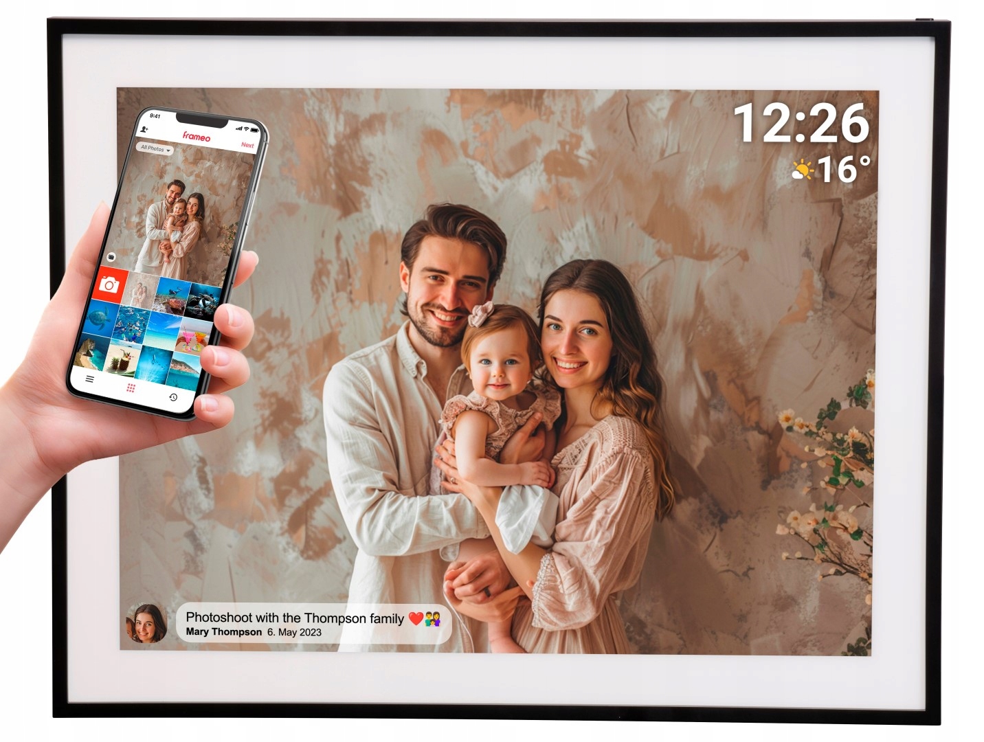 Digitální rámeček na fotografie s Wi-Fi o úhlopříčce 19 palců a fotografickým softwarem FRAMEO. Jedná se o nový, komunitní způsob sdílení fotografií s přáteli a rodinou. Dotykový IPS displej zajišťuje dobré a ostré snímky.Aplikace Frameo umožňuje sdílení fotografií s nejbližšími. Můžete přenášet fotografie přímo z chytrého telefonu do digitálního rámečku Frameo a sdílet tak s přáteli a rodinou seznámení s důležitými událostmi. K fotografii můžete přidat podpis a popsat tak své zážitky!