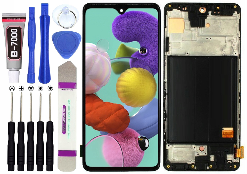 DISPLEJ PRO SAMSUNG GALAXY A51 2019 A515 A515FÚHLOPŘÍČKA OBRAZOVKY 6,3″PODROBNĚJŠÍ INFORMACE:Vyrobeno technologií OLEDBarva – ČernáModel – GALAXY A51 A515FVelikost – 6,3“Regulace jasu – ANOBez zabarvení a mrtvých pixelůMontáž nevyžaduje pájení a změnu softwaruJedná se o kompletní displej skládající se z:LCD modulDotyková obrazovka (digitizér)Pásky zapínané do základní deskyK objednávce zdarma dodáváme:1. SADA PŘESNÝCH NÁSTROJŮ A ŠROUBOVÁKŮ9 prvků2. SYNTETICKÉ LEPIDLO B-7000Objem 3 ml3. KOVOVÝ OTVÍRÁKPOZORPřed správnou montáží (vložením do pouzdra) prosím pečlivě zkontrolujte LCD a dotyk (test minimálně 15 minut).Kupující je povinen si před montáží zkontrolovat displej sám.Neodtrhávejte ochrannou fólii a nepřilepujte displej, dokud se neujistíte, že displej nemá žádné vady a funguje správně.