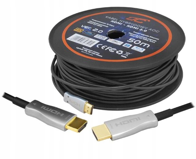 Dlouhý Hybridní Kabel Hdmi 50 M Ultra Hd 4K Aoc