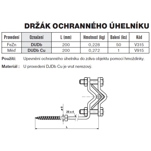 10 KčDržák ochranného úhelníku do dřeva měď DUDb CU TREMIS V915
