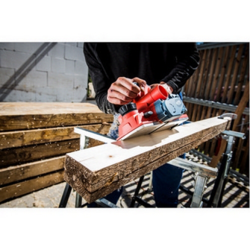 Velmi silný hoblík s hoblovací šířkou 110mm je určen k hoblování, srážení a drážkování dřeva, např. trámů a prken. Můžete s ním hoblovat 0-3mm při jednom protahu a hloubka úběru se nastavuje po 0,25mm. Při hoblování polodrážek můžete využít rozsah 0 až 8mm. Na hoblovací desce jsou dvě různě hluboké drážky sloužící k jednoduchému srážení hran a sklopný ochranný trn, který chrání při přerušení práce, nože a plochu pod hoblíkem proti poškození. Pokud preferujete práci bez tohoto ochranného trnu, můžete ho jednoduše zajistit v desce, aby se nevyklápěl. Pro udržování čistého pracovního prostoru lze k hoblíku připojit odsávání z pravé nebo levé strany. Hlavní přednosti: hoblovací šířka 110mm dvě různě hluboké drážky pro srážení hran sklopný ochranný trn v hoblovací desce hoblíku odsávání lze připojit z obou stran Technické parametry: napětí/frekvence: 230V/50Hz příkon: 1000W otáčky: 16000/min hoblovací šířka: 110mm nastavitelný úběr: 0-3mm hloubka polodrážky: 0-8mm hmotnost: 4.1kg