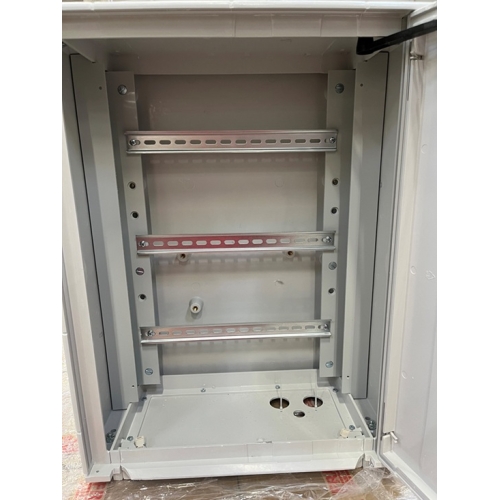 Prázdná skříň s lištou DIN s pilířem. Parametry: materiálové provedení: termoset konstrukční provedení: pilíř uzavíraní dveří: jednobodové se čtyřhranem 6×6 mm výška: 1835 mm šířka: 470 mm hloubka: 250 mm