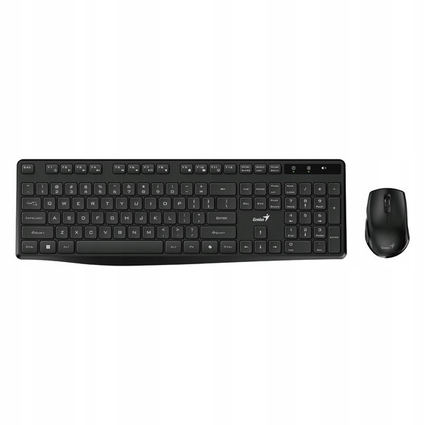 Genius KM-8206S COPILOT, CZ/SK set klávesnice, klasická, 2.4 [Ghz], bezdrátová, černá 31340017409 Genius KM-8206S Genius KM-8206S je vysoce kvalitní bezdrátový set klávesnice a myši, navržený tak, aby splňoval všechny základní kancelářské potřeby. Klávesnice v plné velikosti nabízí tiché psaní díky vylepšené struktuře membránových kláves, díky čemuž je ideální volbou pro práci v tichém prostředí. Klávesy jsou příjemné na dotek, což zvyšuje komfort používání i při dlouhých psacích sezeních. Klávesnice je vybavena dedikovanou klávesou pro spuštění AI asistenta Microsoft Copilot, což usnadňuje správu úkolů a aplikací ve Windows. Sada funguje bezdrátově prostřednictvím miniaturního USB přijímače na frekvenci 2,4 GHz pro stabilní připojení a svobodu pohybu bez nutnosti použití kabelů. Součástí balení je také tichá myš s optickým senzorem s rozlišením 1200 DPI, která zajistí přesné a plynulé ovládání kurzoru. Myš má ergonomický tvar a tři tlačítka, která umožňují její pohodlné používání při kancelářské i domácí práci. Klávesnice má také indikátor slabé baterie, což vám pomůže vyhnout se nečekanému vyčerpání energie v klíčovém okamžiku. Technické specifikace – Klávesnice: Typ klávesnice: Membránová Typ připojení: 2.4 GHz (přes USB adaptér) Multimediální klávesy: Ne Rozložení kláves: US/CZ/SK Podsvícení: Ne Napájení: 2 x AAA baterie (součástí balení) Rozměry: 435,7 mm x 140,2 mm x 23,3 mm Hmotnost: 480 g Barva: Černá Technické specifikace – Myš: Typ myši: Optická Počet tlačítek: 3 Rozlišení senzoru: 1200 DPI Napájení: 1 x AA baterie (součástí balení) Rozměry: 100 mm x 62,8 mm x 39,8 mm Hmotnost: 58 g Barva: Černá Klíčové vlastnosti sady Genius KM-8206S: Bezdrátové připojení na frekvenci 2,4 GHz pro svobodu práce Tiché klávesy a ergonomický design klávesnice Vyhrazená klávesa pro spuštění Microsoft Copilot Přesná optická myš s rozlišením 1200 DPI Snadné startování díky vestavěnému indikátoru baterie a přiloženým bateriím Genius KM-8206S je ideální sada pro uživatele, kteří ocení pohodlí a jednoduchost při každodenní práci a nabízí tichý provoz, bezdrátové připojení a funkce podporující produktivitu.Parametry