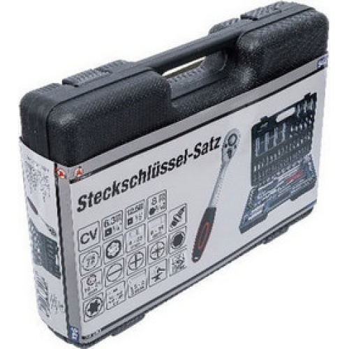 rozsah dodávky: 3ks. Sada klíčů typu L, vnitřní šestihran 1,5 – 2 – 3 mm Pohon 6,3 mm (1/4″) 13 zásuvek, Super Lock: 4 – 4,5 – 5 – 5,5 – 6 – 7 – 8 – 9 – 10 – 11 – 12 – 13 – 14 mm 8 patic, Super Lock, dlouhý: 6 – 7 – 8 – 9 – 10 – 11 – 12 – 13 mm 1 otočná ráčna, jemná 72 zubů 2 prodlužovací tyče, 50 a 100 mm 1 univerzální kloub 1 adaptér vnější šestihran x vnější čtyřhran 6,3 mm (1/4″) 1 flexibilní prodlužovací tyč, 140 mm 1 posuvná rukojeť 110 mm 1 násadec 150 mm nástavce na 3 bity, slot SL 4 – 5,5 – 7 mm, délka 38 mm nástavce na 2 bity, křížový slot PH1 – PH2, délka 38 mm 2 bitové patice, křížová drážka PZ1 – PZ2, délka 38 mm 4 bitové patice, vnitřní šestihran 3 – 4 – 5 – 6 mm, délka 38 mm 6bitové patice, T-Star (pro Torx) T8 – T10 – T15 – T20 – T25 – T30, délka 38 mm 12, 5 mm (1/2″) pohon 18 zásuvek super lock: 10 – 11 – 12 – 13 – 14 – 15 – 16 – 17 – 18 – 19 – 20 – 21 – 22 – 23 – 24 – 27 – 30 – 32 mm 4 zásuvky super lock, dlouhé: 14 – 15 – 17 – 19 mm 2 nástrčky na svíčky s pryžovým držákem 16 a 21 mm 1 otočná ráčna, jemná 72 zubů 2 prodlužovací tyče 125 a 250 mm 1 kardanový kloub 1 posuvný T adaptér pro prodlužovací tyče 1 držák bitů vnitřní šestihran 8 mm (5/16″) 8 mm (5/16″) mechanika 3 bity, slot SL 8 – 10 – 12 mm, délka 30 mm 2 bity, křížový slot PH3 – PH4, délka 30 mm 2 bity, křížová drážka PZ3 – PZ4, délka 30 mm 4 bity, vnitřní šestiúhelník 8 – 10 – 12 – 14 mm, délka 30 mm