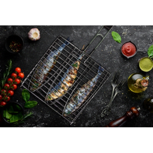 Příslušenství ke grilům – nerez rošt na grilování a uzení až tří ryb z kvalitního a odolného materiálu. Výhodou roštu na ryby G21 je kvalitní provedení, pevná rukojeť s ochranou proti popálení a možnost snadného otáčení ryb pro ogrilování z obou stran.