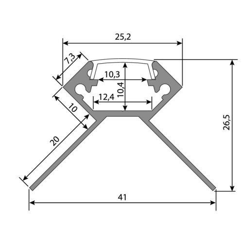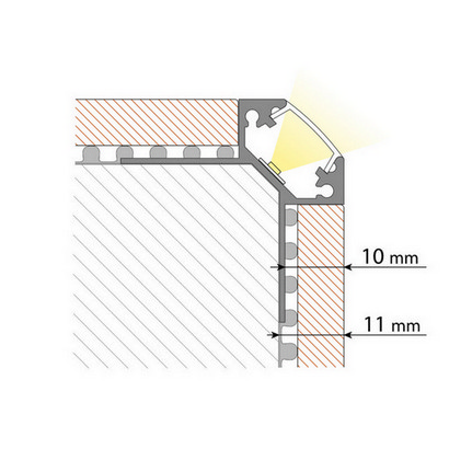 Hliníkový profil pro obklady a dlažbu pro LED pásky, rozměry průřezu cca 41x27mm. Součástí je mléčný difuzor, který lze do profilu nacvaknout. Tento profil je určen pro krytí a chlazení LED pásků do šíře až 12mm a výkonu max. 19,2W/m. Profil lze upevnit pomocí vrutů nebo lepidla. K profilu lze zakoupit také koncovky.