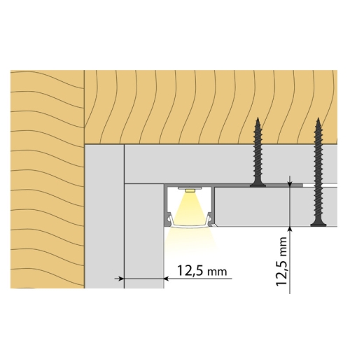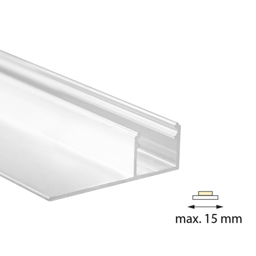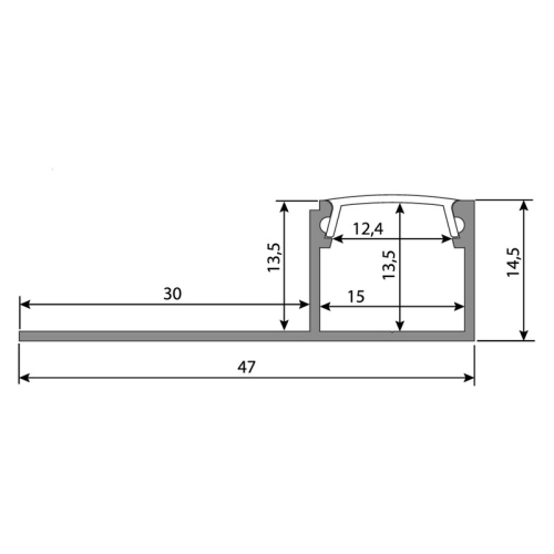 Hliníkový profil pro sádrokartony pro LED pásky, rozměry průřezu cca 47x15mm. Součástí je mléčný difuzor, který lze do profilu nacvaknout. Tento profil je určen pro krytí a chlazení LED pásků do šíře až 14mm a výkonu max. 19,2W/m. Profil lze upevnit pomocí vrutů nebo lepidla. K profilu lze zakoupit také koncovky.