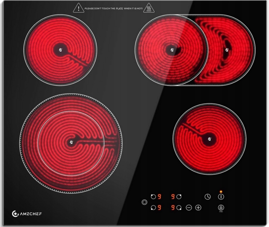 O tomto produktu Keramická varná deska se 4 poli: čtyři varné zóny lze ovládat nezávisle, bez vzájemného rušení. Dvojitá zóna (1000/2200 W) pojme větší hrnce a pánve, což výrazně zkracuje dobu vaření. Oválná zóna (1100/2000 W) pojme oválné nebo obdélníkové hrnce a pánve, jako jsou grilovací pánve, které lze snadno použít pro smažení steaků a grilování.Přesná regulace teploty: keramická varná deska AMZCHEF nabízí celkem 9 úrovní výkonu, takže si ji uživatelé mohou přizpůsobit podle svých potřeb. Lze velmi přesně nastavit požadovaný rozsah teploty. Splňuje různé kulinářské potřeby, jako je vaření v páře, pečení, smažení, smažení s mícháním, grilování a vaření vody. Dotykový displej lze snadno ovládat jedním dotykem prstu bez nutnosti použití složitých tlačítek.Mnoho bezpečnostních záruk: keramická varná deska nabízí bezpečné, pohodlné a rychlé vaření. Nabízí mnoho bezpečnostních funkcí, jako je 99 minutový časovač, ochrana proti přehřátí, automatické vypnutí, upozornění na zbytkové teplo a bezpečnostní zámek. Keramická deska nevytváří elektromagnetické záření, což je prospěšné pro životní prostředí a zdraví těhotných žen!