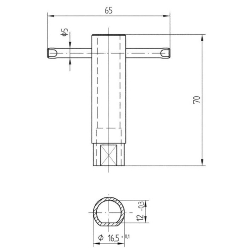 Trubkový klíč k zámkům rozvaděčů, elektroměrových a pojistkových skříní, tvar „D“ Materiál: ocel, galvanicky zinkováno.