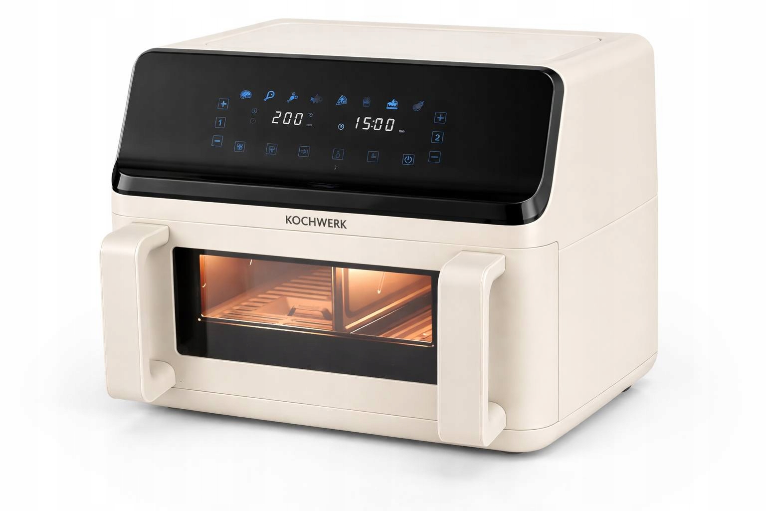 Kochwerk Air Fryer Fritéza bez tuku 2700 W 9 litrů, 2 přihrádkyZnačka: Kochwerk – německá značkaBarva: béžovo-černáDvojitá zóna umožňuje přípravu různých pokrmů současněVýběr individuálního programu pro každou komoru = doba přípravy obou pokrmů je automaticky synchronizovánaDigitální fritéza s dělenou 9litrovou komorou pro vaření, smažení a fritování8 programů ovládaných jedním dotykem a manuální režim: steak, kuřecí stehna, krevety, ryba, pizza, hranolky, pečení, zeleninaPro velkou flexibilitu a rozmanitost potěšení: Komorová fritéza Rachs KOCHWERK Vario s dělitelnou 9litrovou komorou umožňuje přípravu pokrmů,které by se normálně nevešly do konvenčních horkovzdušných fritéz – bez ohledu na to,nebo chcete hostům naservírovat lahodná žebírka, připravit velký filé z lososa,nebo upéct lasagne pro celou rodinu v žáruvzdorné nádobě.Pokud spěcháte, XXL prostor pojme také až 8 porcí hranolků nebo celou mraženou pizzu o průměru až 26 cm!Na druhou stranu lze v komorové fritéze Rachs KOCHWERK Vario připravit také dvě různé pokrmy najednou, protože dělicí stěna může sloužit k rozdělení prostoru pro vaření na dvě samostatné komory, každá o objemu 4,5 litru, a přeměnit tak XXL zónu na dvojitou zónu. Programy, časy vaření a teploty lze individuálně nastavit v obou komorách fritézy – konec doby vaření se synchronizuje automaticky. Znamená to, že například hranolky a rybí filé jsou připraveny k podávání současně.Kromě toho 8 přednastavených programů zajišťuje větší rozmanitost v menu: grilování, smažení v hlubokém tuku, pečení, ohřívání, udržování v teple, sušení, hranolky, slanina, kuřecí křidélka. Stačí zvolit požadovaný program pomocí dotykového displeje a ponechat správnou teplotu a dobu přípravy fritézy. Vykouzlete si své oblíbené pokrmy pro celou rodinu s lehkostí! Díky 60 minutovému časovači a funkci udržování teploty lze přepážky a rošty mýt v myčce nádobí.M195