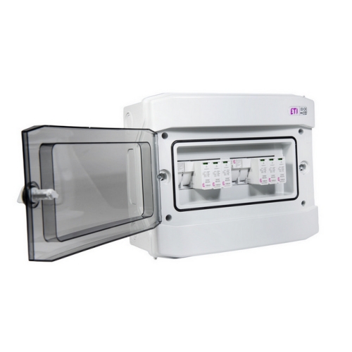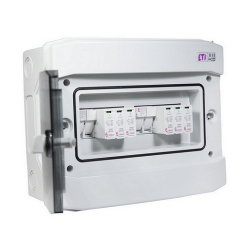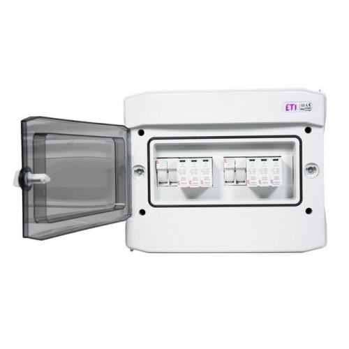 Kompletní DC nástěnnou rozvodnici ETI RFVE-DC2-2-T12 2 string s průhledným víkem a prodlouženou zárukou na 7 let využijete při zařizování fotovoltaické elektrárny. Je určena pro maximální napětí 1 000 V, nabízí pozice pro 12 modulů…
