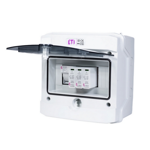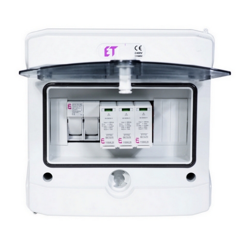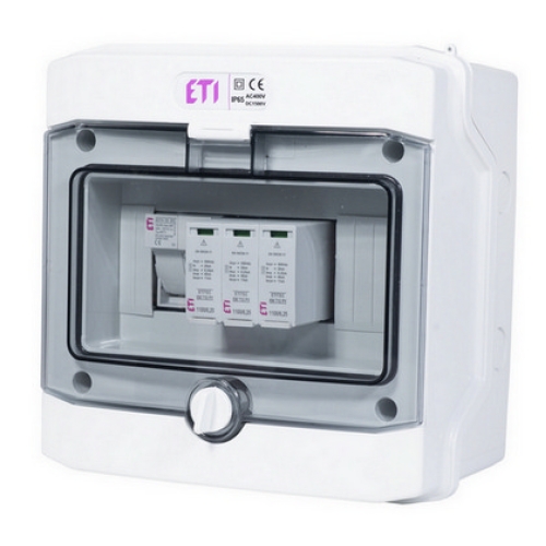 Kompletní DC nástěnnou rozvodnici ETI RFVE-DC1-1-T12 1 string s průhledným víkem a prodlouženou zárukou na 7 let využijete při zařizování fotovoltaické elektrárny. Je určena pro maximální napětí 1 000 V, nabízí pozice pro 8 modulů…