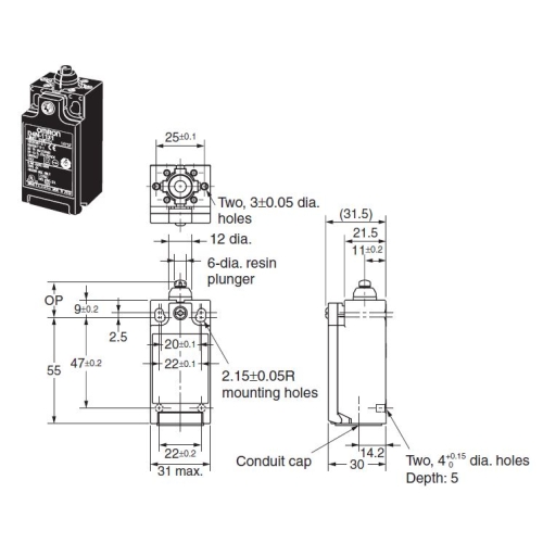 Bezpečnostní koncový spínač, vývodka :1x. Pg13. 5, kontakty: 1. NC/1. NO, mžikové, plunžr,