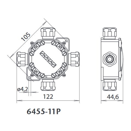 Vodotěsná instalační krabice SEZ ACIDUR 6455-11 P/2 5. P ve světle šedé barvě disponuje 4 x PG16 průchodkami pro pevné vodiče 4mm2. Vyrobeno ze samozhášivého polypropylenu. Stupeň krytí dosahuje IP67. Specifikace vodotěsné instalační krabice SEZ ACIDUR…