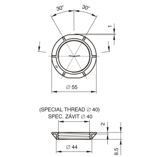 Závitový upevňovací kroužek Technické údaje: termoplast pro objímky řady 1352 Barva: černá