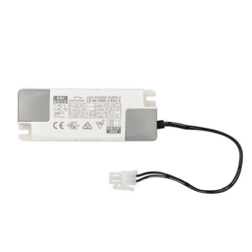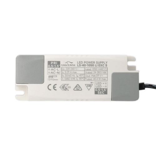 Neregulovatelný SELV zdroj konstantního proudu k LED panelům Office. Maximální výkon 40. W, PF 0,9, výstupní napětí DC24-38,5. V, výstupní proud 1050m. A. Rozměry 102x38x25 mm, IP20, materiál: plast. Zdroj disponuje integrovanou ochranou proti zkratu i přetížení.