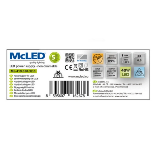 229 KčLED driver 40W 1050mA ke svítidlům McLED Office ML-419.050.32.0