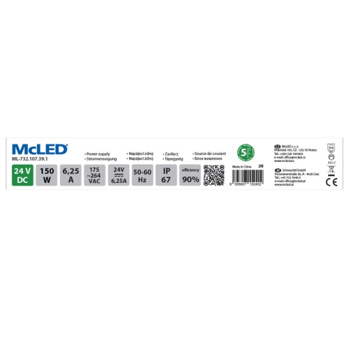 1 870 KčLED napájecí zdroj McLED 24VDC 6,25A 150W ML-732.107.39.1
