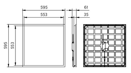 (in brown Eco Packaging), 600×600 mm, Visible profile ceiling version, Ocel, Bílá, Signální bílá (RAL9003), Externí napájecí zdroj (zapnuto/vypnuto), 4300 lm, 31 W, 140 lm/W, 4000 K, (0.38, 0.38) SDCM ≤3, Vyzařovací úhel 90°, Mikroprizmatická čočka, Polystyren, IP20/40 | Ochrana proti vniknutí prstů, ochrana proti proniknutí drátů, IK02 | 0,2 J standardní, Bezpečnostní třída II, 2× 0,75mm², Volné přívody / kabely
