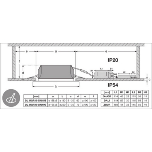 Svítidla Downlight s nízkým oslněním, vhodná pro monitory pracovních stanic. Vlastnosti produktu: Materiál pouzdra: Reflektor se zrcadlovým hliníkovým povrchem. Třída ochrany: IP54 (strana místnosti) / IP20 (zadní strana). Připojovací krabice s bezšroubovou svorkovnicí pro připojení bez nutnosti použití nástrojů. Možnost kabelového propojení. K dispozici jsou verze svítidel s driverem DALI-2 připraveným na IoT nebo technologií IoT Zigbee 3.0. Výhody produktu: Dobrá redukce oslnění (UGR < 19) a vyzařovací úhel až 30° pro pohodlné osvětlení interiéru. Snadná a rychlá instalace díky připojovacímu boxu s 5pólovou beznástrojovou svorkovnicí. Nízká úroveň blikání. Vhodné pro použití v prašných a vlhkých místech díky vysoké hodnotě IP. 5letá záruka. Oblasti použití: Vhodné pro kancelářské aplikace, zejména pro pracoviště s počítačovými obrazovkami. Přímá náhrada za svítidla s kompaktními zářivkami. Vchody / haly. Koupelny, kuchyně, zastřešené venkovní prostory. Všeobecné osvětlení. Výbava / příslušenství: Včetně externího předřadníku.