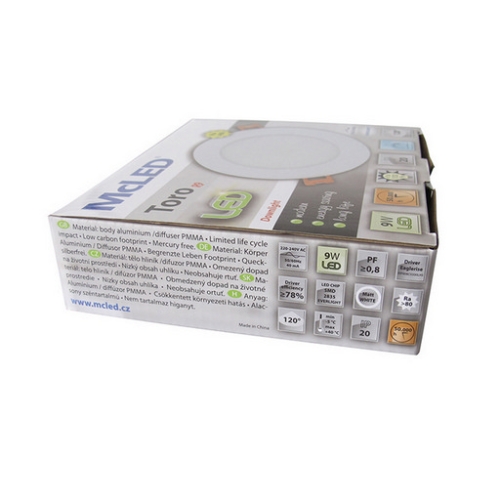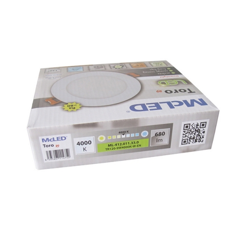 Kulaté podhledové světlo McLED Toro R9 je praktické stropní LED svítidlo se snadnou instalací. Je vyrobeno z kovu a opálového skla a díky bílé barvě a vestavné montáži bude na vašem stropě téměř neviditelné. Vyzařuje neutrální bílou barvu a díky LED technologii dosahuje jeho životnost až 50.000 hodin, má navíc i nízkou spotřebu, takže ušetříte peníze za jeho provoz. Podhledové LED světlo McLED Toro R9 ve tvaru kruhu s průměrem 120 mm má výkon 9 W, vyzařovací úhel 120°, světelný tok 680 lm a teplotu chromatičnosti 4000 K. Životnost dosahuje 50.000 hodin a stupeň krytí IP20. Vybírejte ze všech vestavných světel na našem e-shopu. Nabízíme kompletní nabídky nástěnných a stropních svítidel, užitečné je i stropní osvětlení s čidlem pohybu či svítidla vhodná do exteriéru. V naší nabídce najdete také koupelnová světla, kuchyňské osvětlení, bodovky, downlighty či lustry. Podívejte se na kompletní nabídku LED svítidel v naší nabídce. O společnosti McLED Společnost McLED s.r.o. je mladá česká firma, která se specializuje na kvalitní a úsporné LED osvětlení, se sídlem ve Vestci u Prahy. Kromě LED pásků McLED nabízí McLED také širokou škálu LED žárovek, svítidel na strop či stěnu, vestavného osvětlení McLED či zářičů.
