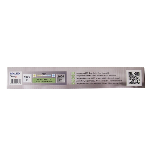 Čtvercové podhledové LED svítidlo z řady McLED Toro s vysokou svítivostí je oblíbené vestavné světlo na strop, které vyniká velmi úsporným provozem, kvalitním provedením a nenápadným vzhledem. Toto stropní osvětlení vyzařuje neutrální bílou barvu, využijete jej například do kanceláří, hotelů, chodeb a mnoha dalších místností. Podhledové LED světlo McLED Toro S21 s rozměry 225 x 225 mm má výkon 21 W, vyzařovací úhel 120°, světelný tok 1600 lm a teplotu chromatičnosti 4000 K. Životnost dosahuje 50.000 hodin a stupeň krytí IP20. Skříň LED osvětlení je vyrobena z hliníku a kryt z opálového skla. Vybírejte ze všech vestavných světel na našem e-shopu.Vybírejte z kompletní nabídky nástěnných a stropních svítidel, užitečné je i stropní osvětlení s čidlem pohybu či svítidla vhodná do exteriéru. V naší nabídce najdete také koupelnová světla, kuchyňské osvětlení, bodovky, downlighty či lustry. Podívejte se na kompletní nabídku LED svítidel v naší nabídce. O společnosti McLED LED osvětlení McLED vzniklo pod záštitou světového dodavatele elektromateriálu Schmachtl. McLED se zabývá výrobou jak svítidel, od stropních a nástěnných svítidel přes kuchyňská či atraktivní zápustná svítidla až po kancelářské osvětlení. Mezi další sortiment patří LED žárovky, LED trubice i kvalitní LED pásky či reflektory.