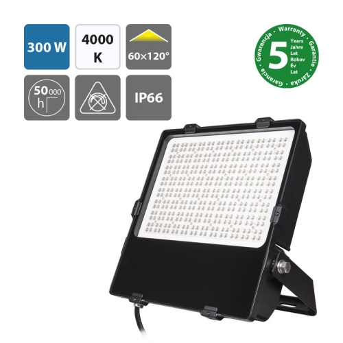 Reflektorové LED svítidlo Delta 300, výkon 300. W, neutrální bílá 4000. K, 39700lm, CRI80, vyzařovací úhel 60×120°, s optikou, rozměry: 450x365x85mm, IP66, IK08, provozní teplota: -30°C – +50°C