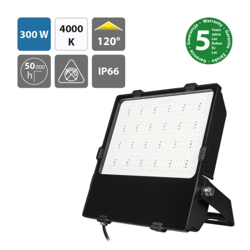 Reflektorové LED svítidlo Delta 300, výkon 300W, neutrální bílá 4000K, 41000lm, CRI80, vyzařovací úhel 120°, bez optiky, rozměry: 380x410x83mm, IP66, IK08, provozní teplota: -30°C – +50°C. Vysoce odolné LED reflektory řady Delta představují ideální náhradu starších halogenových reflektorů. Tato LED svítidla vynikají vysokou svítivostí, dlouhou životností, snadnou instalací a kvalitou použitého materiálu. Všechny reflektory Delta mají krytí IP66, a odolnost proti nárazu IK08. Tento model reflektoru vyzařuje neutrální bílou barvu světla, která je nejvíce podobná barvě přirozeného denního světla.
