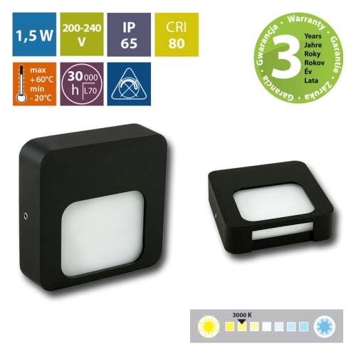 435 KčLED svítidlo McLED Ursa S, 1,5W, 3000K, IP65, černá ML-517.005.19.0