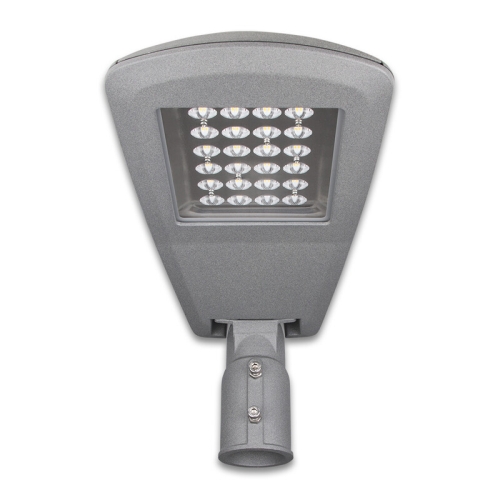LED pouliční svítidlo 40. W, šedá barva, 230. V, IP65, 3000. K – teplá bílá, světelný tok 4180lm, vyzařovací úhel 145×85°, CRI>70, životnost až 50. 000h, rozměry 517x220x117mm, materiál hliník+sklo, nestmívatelné, PF>0,9