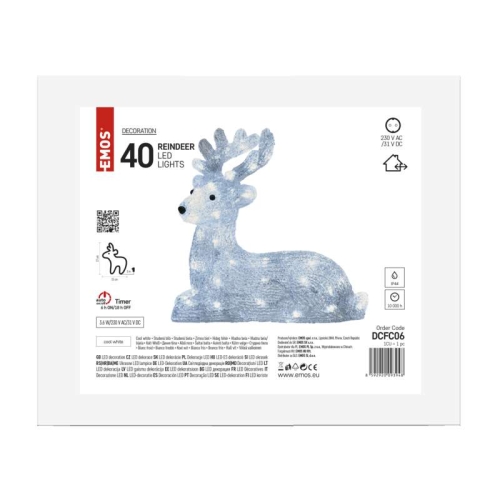 LED vánoční jelínek EMOS DCFC06 ZY2275 230V studená bílá s časovačem