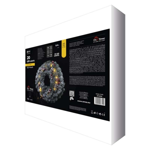 297 KčLED vánoční věnec EMOS DCTW06 ZY2354 2xAA teplá bílá časovač vnitřní použití