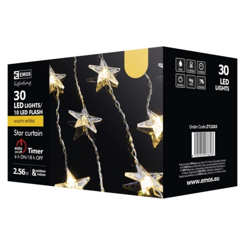 199 KčLED vánoční závěs EMOS DCGW01 ZY2263 hvězdy 120x90cm vnitřní použití teplá bílá s časovačem