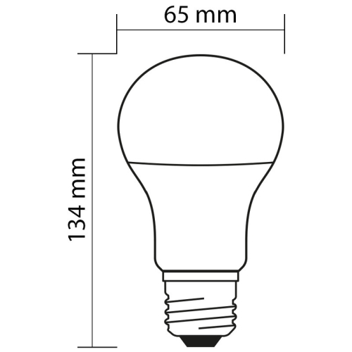 LED žárovka A65 15. W (ekvivalent 100. W), patice E27, 230. V, 4000. K – neutrální bílá, světelný tok Φ use 360° 1521lm, vyzařovací úhel 200°, CRI80, úspora až 84%, životnost až 25. 000h, 15. 000 spínacích cyklů, rozměry ø 65…