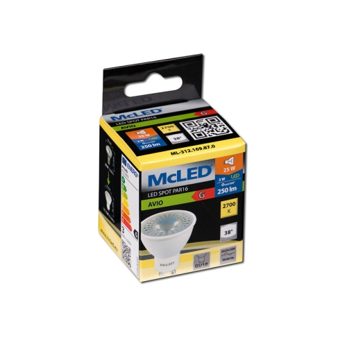 40 KčLED žárovka GU10 McLED 3W (25W) teplá bílá (2700K), reflektor 38° ML-312.169.87.0