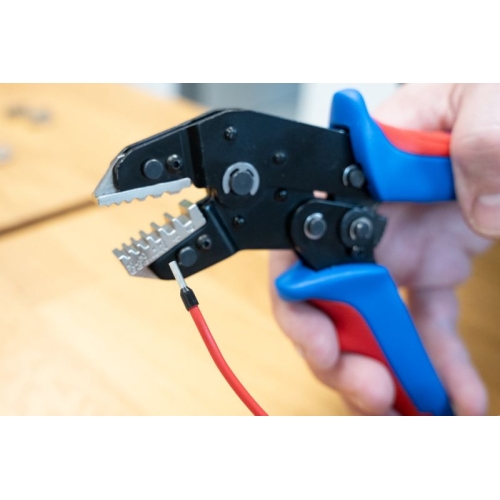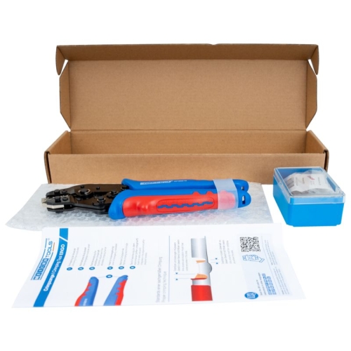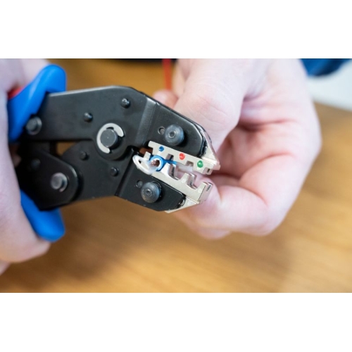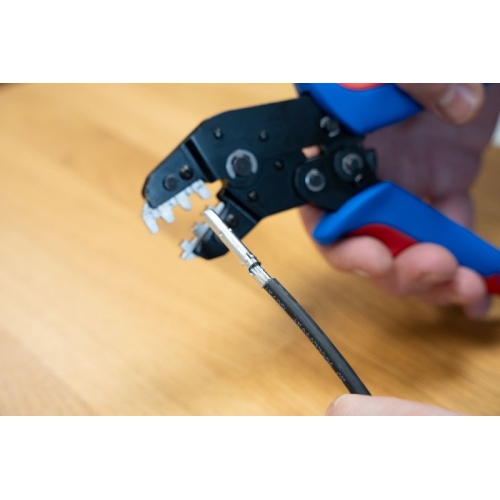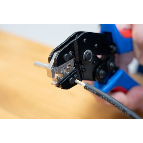 přesná práce díky ráčnovému mechanismu s blokovacím zařízením procesně bezpečné krimpování – nástroj se otevře až po krimpování nouzové uvolnění v rukojeti (v případě nesprávného použití) sada 3: modulů pro konektory MC4/izolované drátové koncovky/izolovaná kabelová…