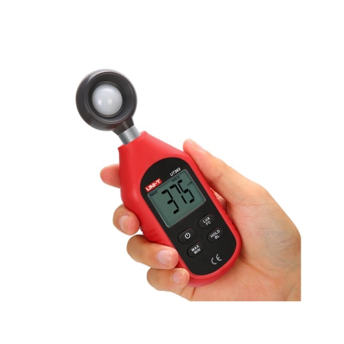 Na tento výrobek poskytujeme 3 roky záruku. Digitální měřič světla (luxmetr) UT383 je stabilní, bezpečný a spolehlivý miniaturní digitální měřič světla, který se široce využívá při vývoji a designu osvětlovacích systémů, v zemědělství, chovech zvířat, důlním průmyslu, laboratořích, kancelářích, domácnostech a je také oblíbený jako výuková pomůcka ve školách a vzdělávacích zařízeních. Čtyřmístný displej se zobrazitelnou hodnotou 9999, při vyšších hodnotách osvětlení se rozsah zvětší 10x nebo 100x, což je indikováno na displeji. Rozsah měření je od 0 Luxů do 199900 Luxů, rozsahy se mění automaticky. Pokud je osvětlení větší než 199900 Luxů, zobrazí se na displeji nápis „OL“. Je možné zvolit jednotky Lux (Lx – v Evropě) nebo FC (v USA, Británii, FC = Lux/10,76). Vzorkovací rychlost měření je 2/s . Napájení je provedeno ze tří kusů baterií 1,5V AAA. Po pěti minutách nečinnosti se přístroj automaticky vypíná. Parametry produktu : – jednoduchý a stabilní, široce využitelný přístroj – měření intenzity osvětlení 0 až 199900 Luxů – automatické přepínání rozsahů – jednotky měření je možné zvolit mezi Lx nebo FC – displej 32 x 26mm se zadním podsvícením Technické parametry : Funkce Měření osvětlení (LUX) Rozsah / Rozlišení / Přesnost 0 až 9999Lx / 1Lx / ±(4% +8digits) ≥10000Lx / 10Lx / ±(5% +10digits) ≥100000Lx / 100Lx / ±(5% +10digits) Funkce Měření osvětlení (FC) Přesnost FC může být prověřena převodem jednotek: 1 Fc = 10,76lx. Rozsah / Rozlišení / Přesnost 0 až 999,9Fc / 0,1Fc / ±(4% + 8digits) ≥1000 Fc / 1Fc / ±(5% + 10digits) ≥10000 Fc / 10Fc / ±(5% + 10digits) Další vlastnosti – rozsah displeje: 4 místa, 9999 – podsvícený displej: 32 x 26mm – automatické přepínání rozsahů: ano – rychlost měření: 2x/sec – zmrazení údaje na displeji Data Hold: ano – režim MAX / MIN: ano – napájecí baterie: 3ks 1,5V AAA – automatické vypnutí: ano po cca 5 minutách – indikace slabé baterie: ano – odolnost vůči pádu: 1 m – pracovní teplota a vlhkost: 0°C až 40°C (max. 80%RH) – čistá hmotnost produktu: 118 g – velikost výrobku: 160 x 50 x 28 mm – barva výrobku: červená a šedá Obsah individuálního balení : – luxmetr UT383: 1ks – baterie 1,5V (AAA): 3ks – blistr: 1ks – český a anglický manuál: 1ks Balení pro velkoodběratele : – standardní množství na karton : 40ks – standardní rozměry kartonu : 505 x 330 x 280 mm – hrubá hmotnost kartonu : cca 8,42 kg